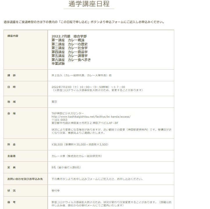 もちろんカレー大學も通学講座に加え、Web講座も盛況の状況です。今になって、7年前に整備したシステムが役に立ってきたのだから、面白いものです。