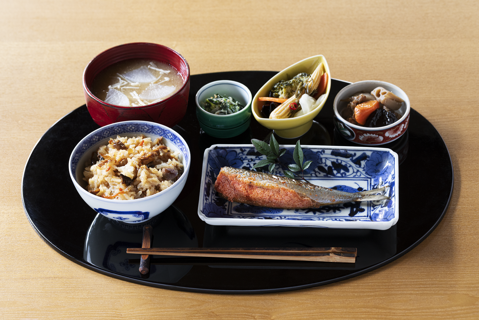 メニューは主食、汁物、主菜、副菜を組み合わせた5‐6品からなる一汁三菜以上の和食献立となっており、まるで旅館で提供されるような御膳をお楽しみいただけます。