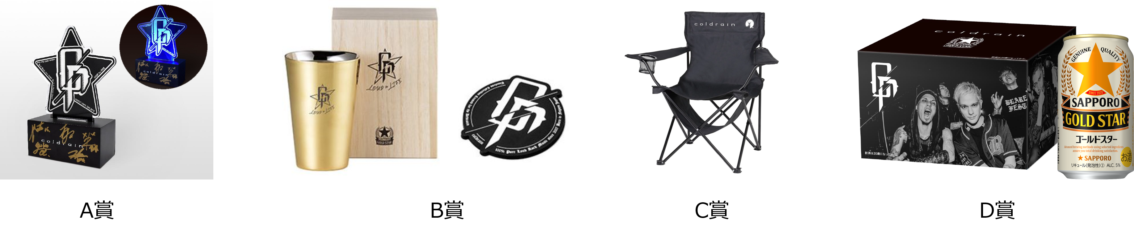 サッポロビール公式アカウント〈Twitter公式アカウント(@SapporoBeer)〉をフォローし、該当のTwitter投稿をリツイートした方の中から抽選でcoldrain×GOLD STARコラボグッズをプレゼントします。