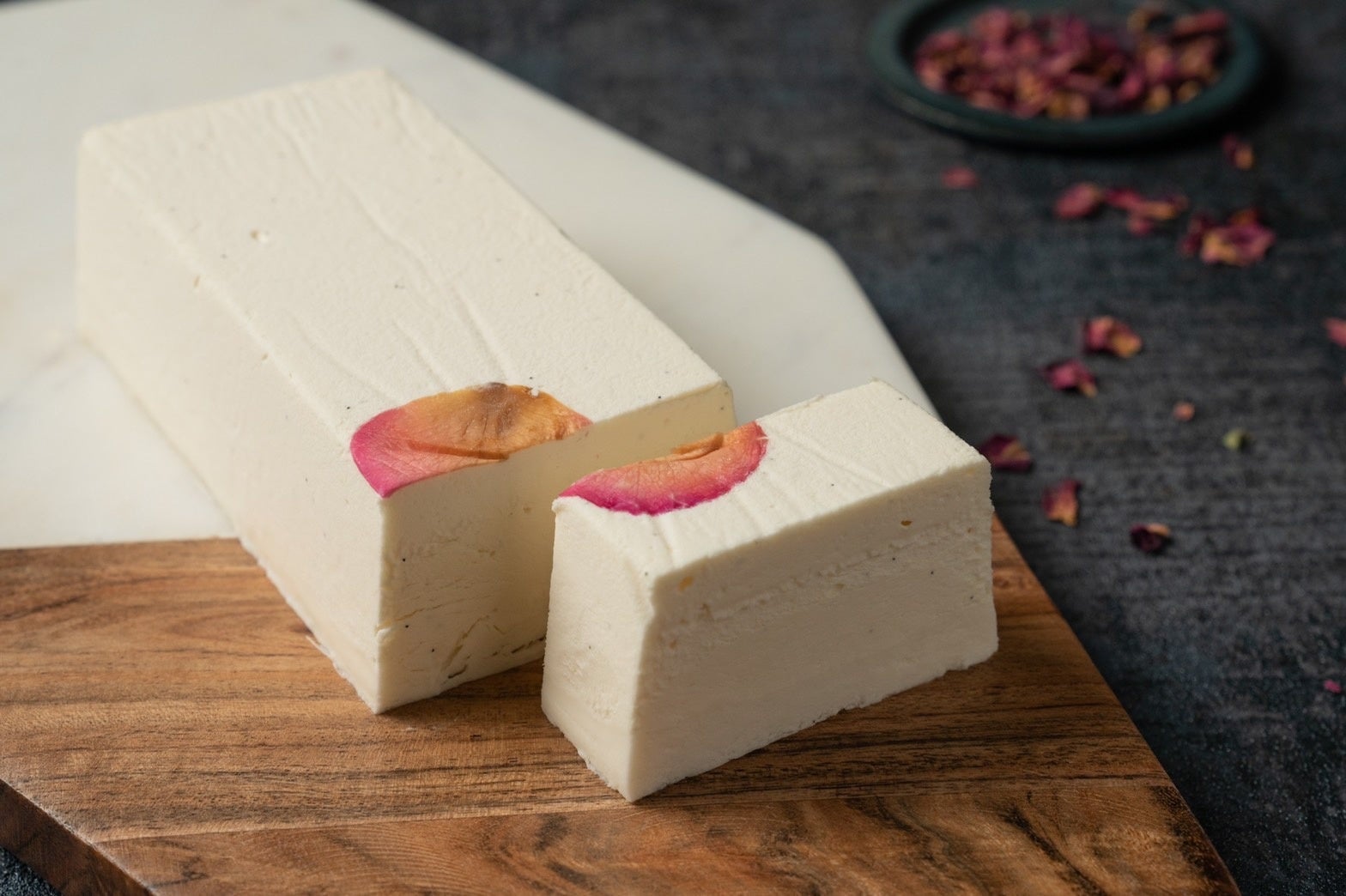 バラの華やかな香りが鼻腔を蕩かす上品なレアチーズケーキです。