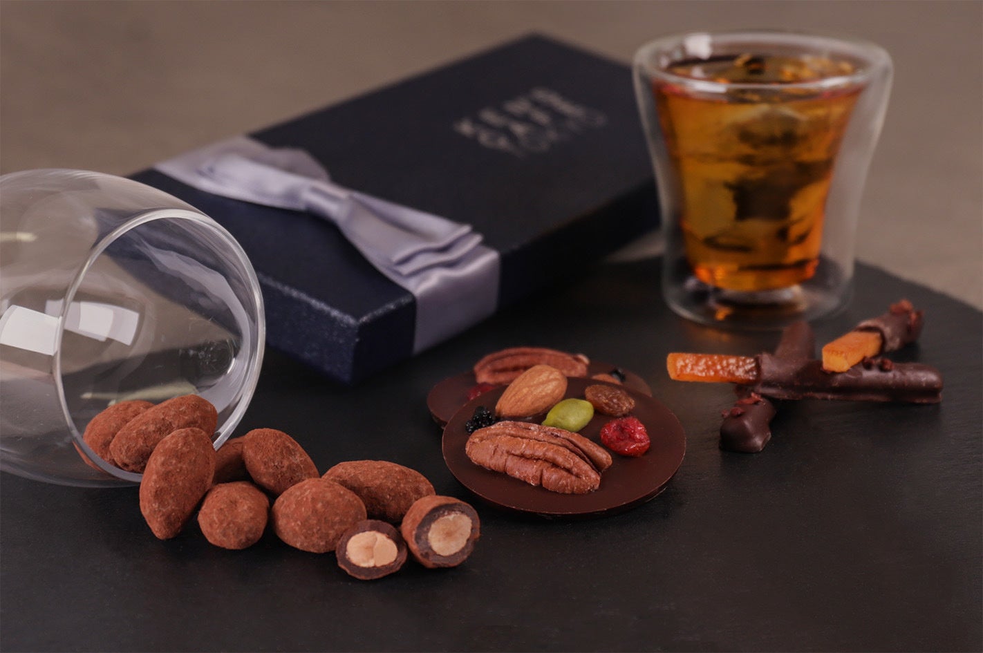 アーモンドを優しくキャラメリゼし、苦味・酸味・甘味のバランスのとれたチョコレートでコーティングをする事により、アーモンドが持つ本来の香ばしさを引き立たせる至極のひと品。
