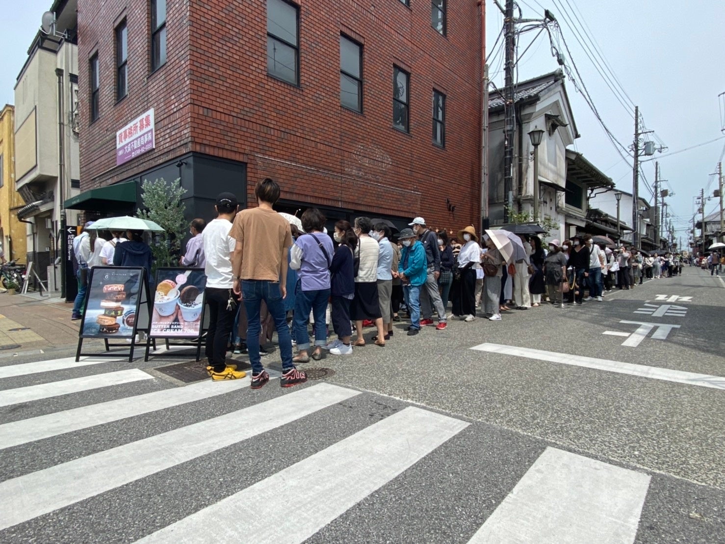 滋賀県長浜市、レトロな街並みが魅力の黒壁スクエアの店舗には、連日多くの人が訪れています。