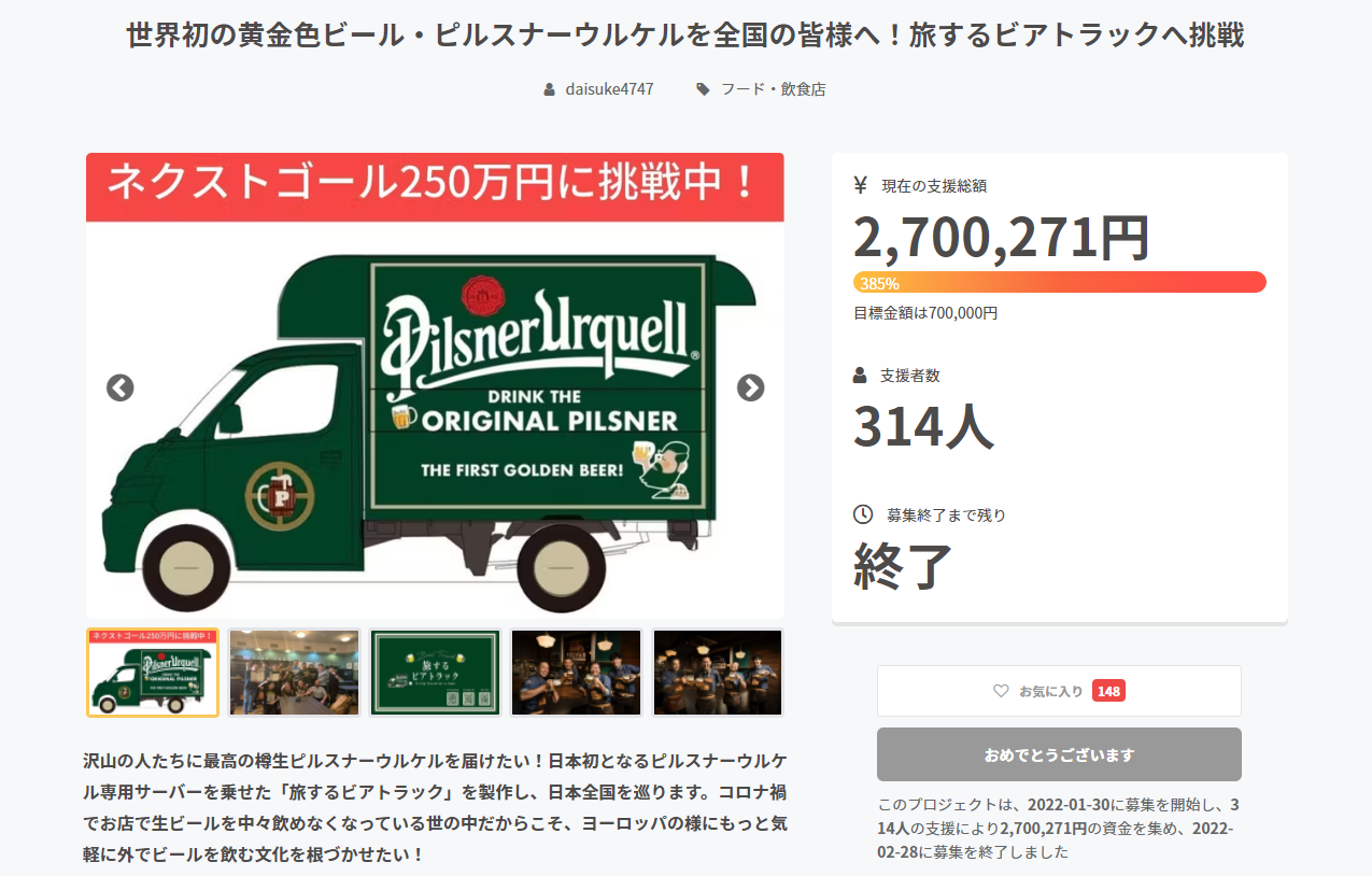 なかには「リターンなんか要らないよ」と見返りを求めず支援だけしてくださる方もいたり、こうした仲間がいてくれたお陰で僕のビアトラックは完成することができました。