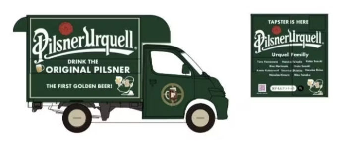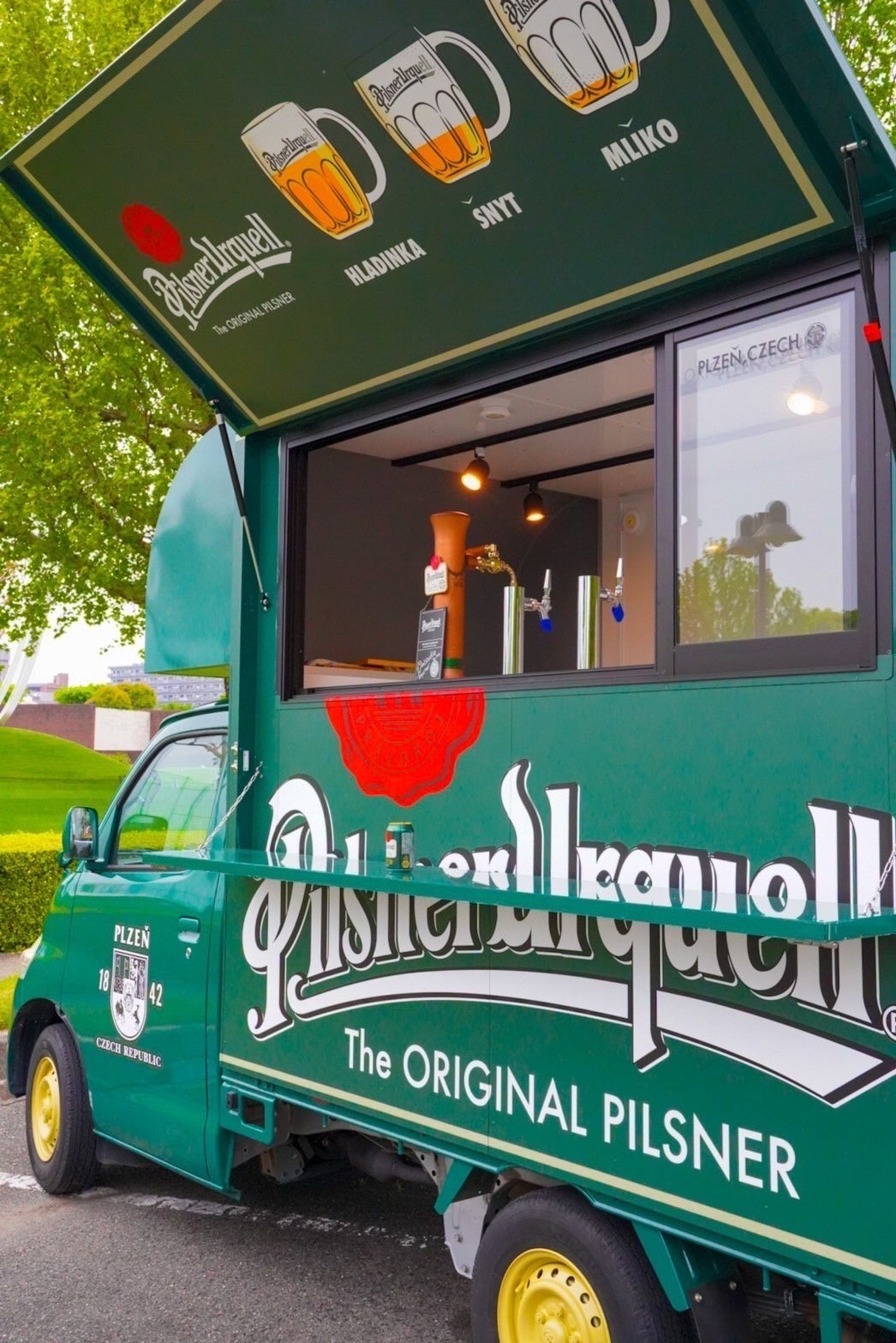 この車両だと「ビールを売ってる」「ピルスナーウルケルがある」と一目で分かるうえ、本来ならタペストリーに描くものを車体にペイントすることで、「ピルスナーウルケル(ビール)を専門に扱ってる証」にもなっていると思っています。