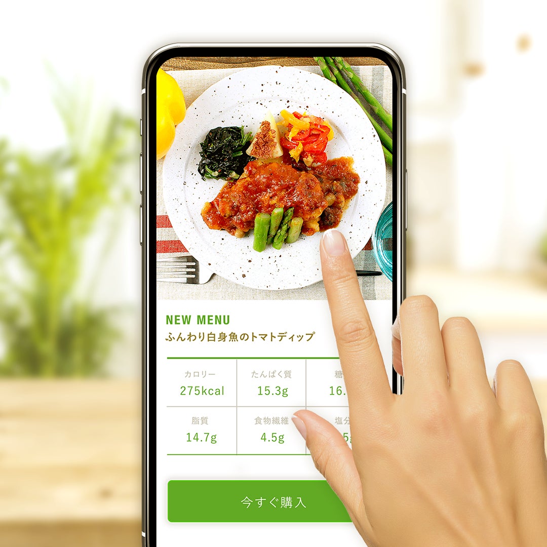 「社会全体を健康に。」を理念とする当社は、商品の企画・製造・販売までを一貫して自社で行っています。 多忙な毎日の中で健康的な食事の準備をすることは簡単ではありません。そうした中で、手軽に栄養管理ができる「nosh」は、自宅に常備される“国民食”となることを目指しています。自社専属シェフと管理栄養士が開発したすべての商品は糖質30g以下、塩分2.5g以下の栄養価を満たし、常時60品以上の商品は継続的にご満足いただけるよう、毎週3商品の新アイテムを投入しています。