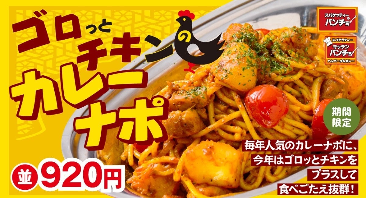 株式会社ファイブグループ(東京都武蔵野市:代表取締役社長 坂本憲史)の関連会社である、株式会社B級グルメ研究所(東京都武蔵野市:代表取締役社長 坂本憲史)が運営する飲食店『スパゲッティーのパンチョ』『キッチンパンチョ』は、夏季限定メニュー「ゴロっとチキンのカレーナポ」を2022年6月10日(金)より販売開始いたします。特製スパイスを効かせた本格的なカレーと、昔懐かしいナポリタンの黄金コンビネーションを楽しめる「カレーナポ」は、毎年多くのご好評をいただいております。今年はカレーソースにコクと旨味をプラスして、さらに美味しく仕上げました。そこへゴロッとチキンを加え、食べ応えも足し算。より一層、ご満足いただける一品を提供いたします。