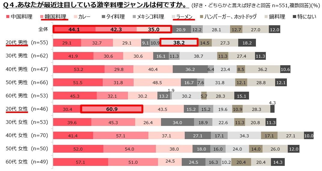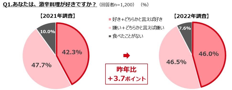 ・激辛料理が好きな人は46.0%。昨年の42.3%から3.7ポイント上昇。