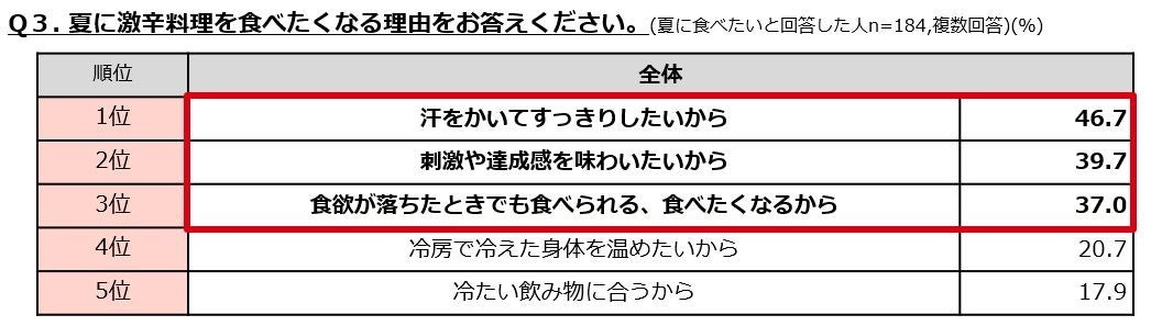 ・夏に食べたい理由は「汗をかいてすっきりしたい」がトップ。