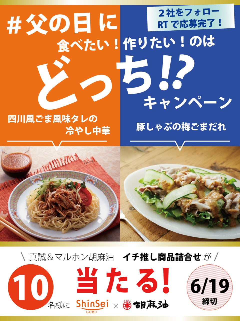 がんばるお父さんの健康をいたわる「セサミン」豊富な「ごま&ごま油W使いメニュー」を紹介し、リプライ欄にてどっちのメニューを父の日に食べたい・作りたいかを問うアンケートも実施します。