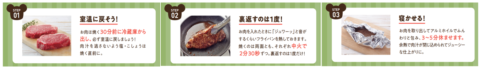 厚切りステーキを美味しく焼く秘密「カンタン3STEP」をご紹介