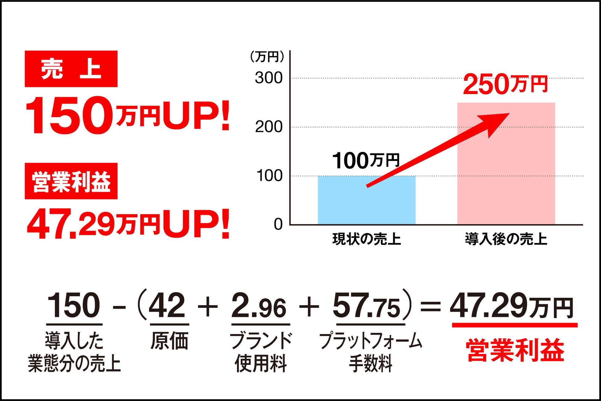 この画期的なサービスを利用していただくことで、全国の飲食店様・企業様は、大幅な設備投資が不要で新たな売上を積み上げることが可能となります。