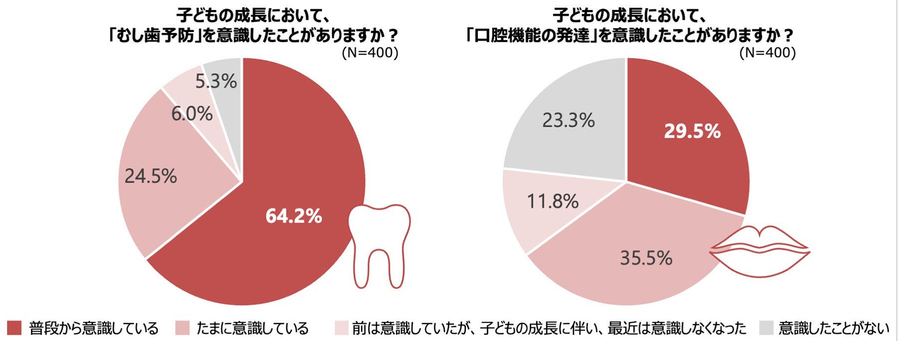 6割以上の親が「むし歯予防」を日常的に意識、一方で「口腔機能」を普段から意識している親は3割未満