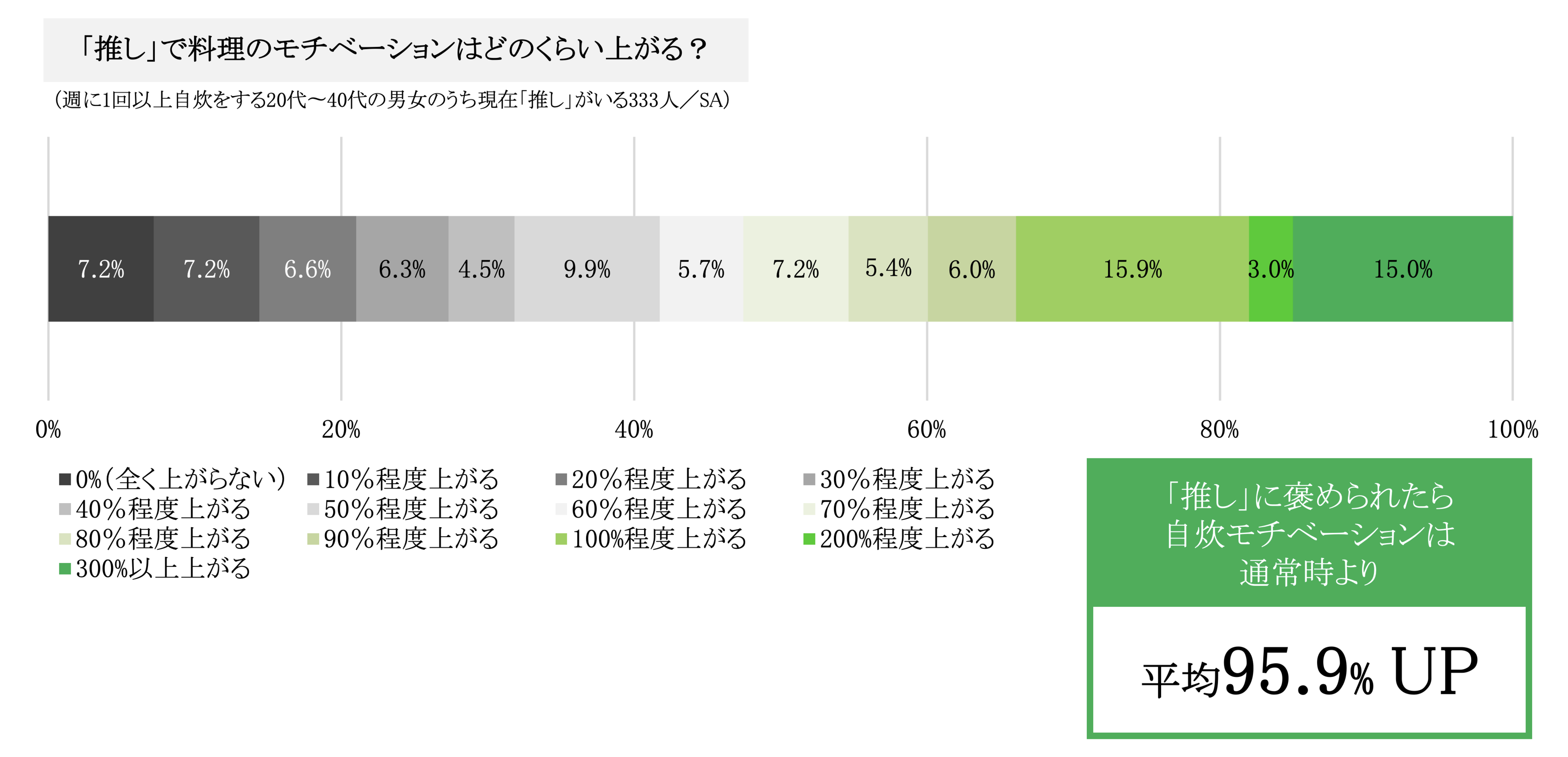 さらに、「推し」に褒めてもらえたら、料理に対するモチベーションは通常時より95.9%UPと、およそ2倍になることが判明しました。