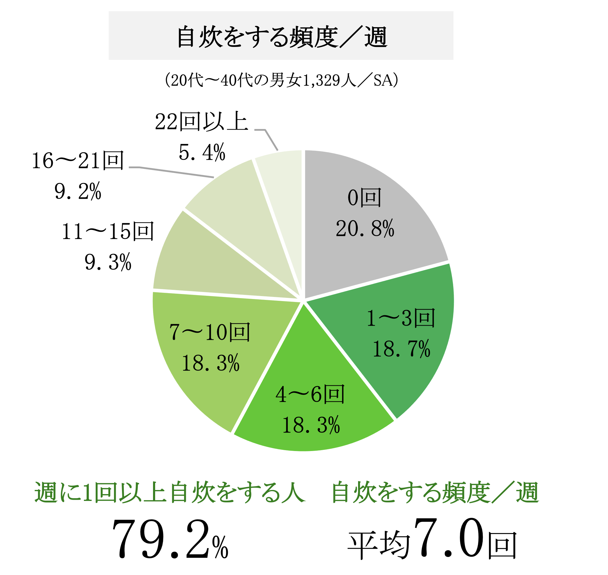 自炊する頻度は週に平均7.0回で、79.2%の人が週に1回以上自炊すると回答しました。