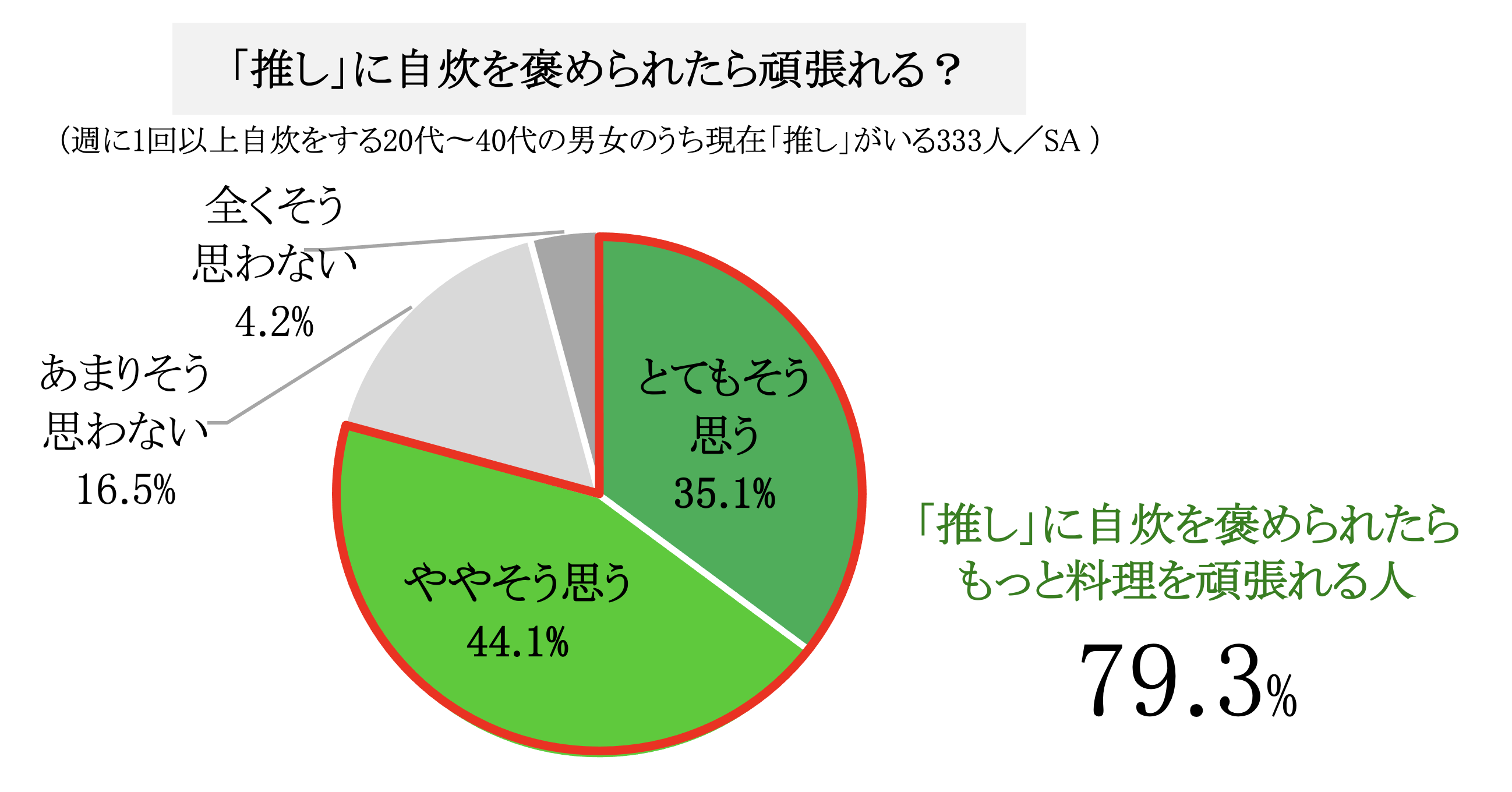 とくに、「推し」がいる人にとっては「推しの褒め」効果はより絶大で、「推しに褒めてもらえたら自炊をもっと頑張れる」という方は79.3%にのぼりました。