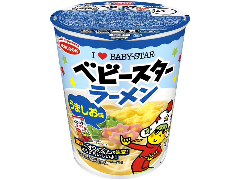 ベビースターの人気定番味である魚介の旨味がきいた「ベビースターラーメン(うましお味)」。そんなうましお味が食べやすいタテ型カップで、見た目もまるでベビースター!ベビースターキャラクター「ホシオくん」が目を引く「ベビースターラーメン カップめん うましお味」として登場します。