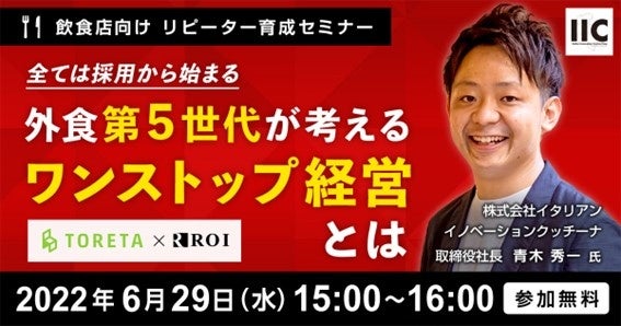 国内最大級の顧客満足度向上プラットフォーム「ファンくる」を運営する株式会ROI(本社:東京都千代田区、代表取締役社長:山口敬人)と株式会社トレタ(本社:東京都品川区、代表取締役 CEO:中村仁)は、株式会社イタリアンイノベーションクッチーナ(本社:東京都渋谷区、代表取締役:四家公明)の取締役社長の青木秀一氏をお迎えし、「全ては採用から始まる外食第5世代が考えるワンストップ経営とは~飲食店向け リピーター育成セミナー~」(定員:100名/無料)を6月29日(水)に共催いたします。(申し込み先:https://biz.fancrew.jp/seminar_contact6?=pr1)