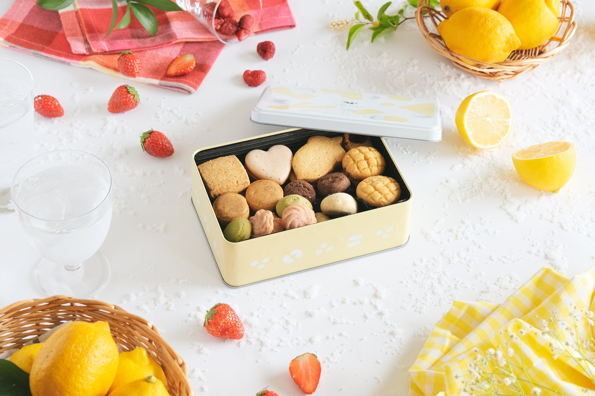 初夏らしいフルーツを使用した、さわやかな味わいのクッキーを中心に集めました。缶を開けた時の楽しさもお届けしたく、彩りもあざやかに仕上げています。