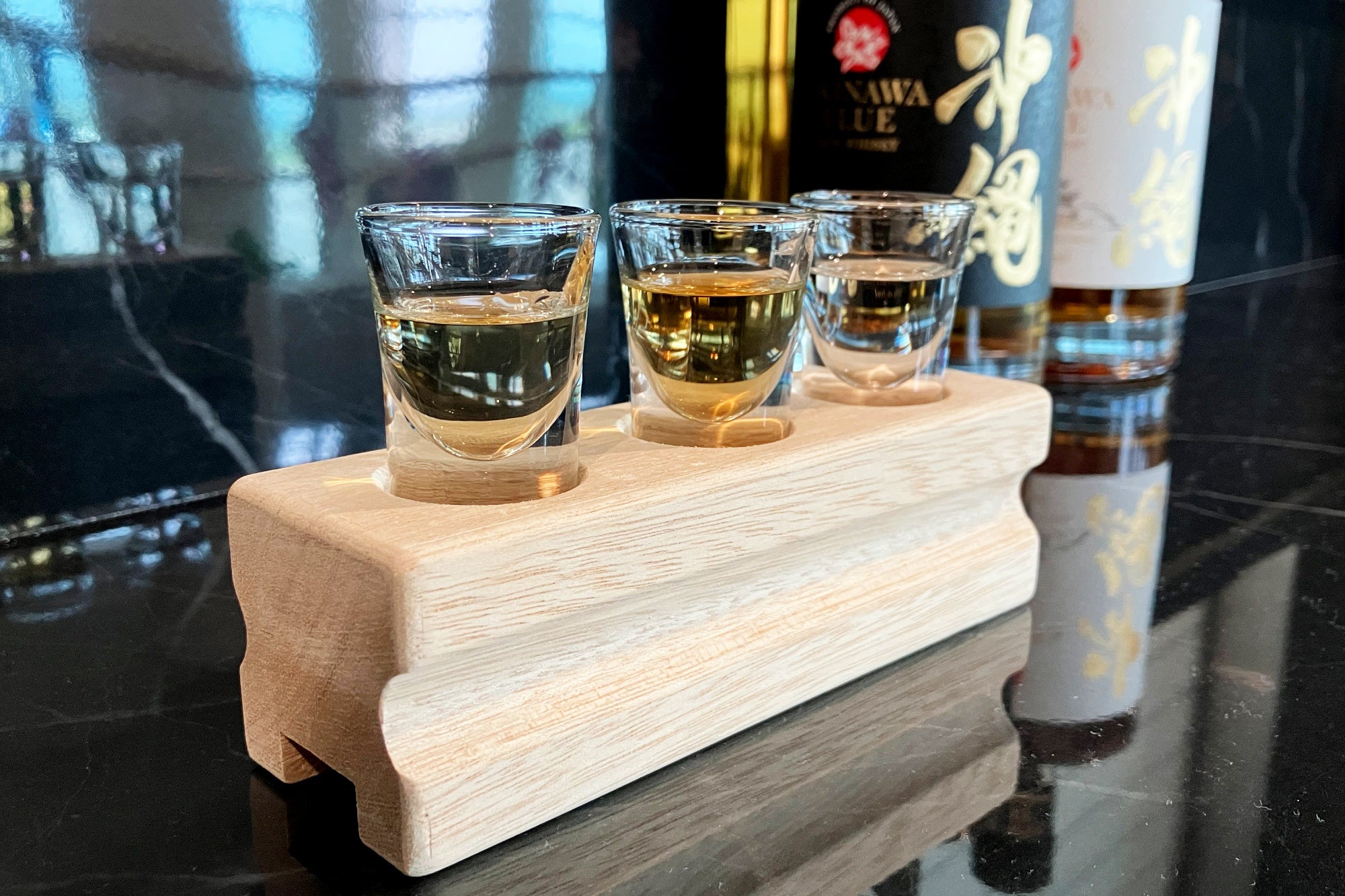 当店では、ライスウイスキーをはじめ、沖縄ならではの原料を生かしたお酒を堪能いただけるだけでなく、ウイスキーの年数別・ニューメイク(ウイスキー樽に詰める前の原酒)との飲み比べ体験などもお楽しみ頂けます。特にニューメイクは一般流通しておらず、当店舗でしか飲むことができませんので、他ではできない希少な体験となるでしょう。