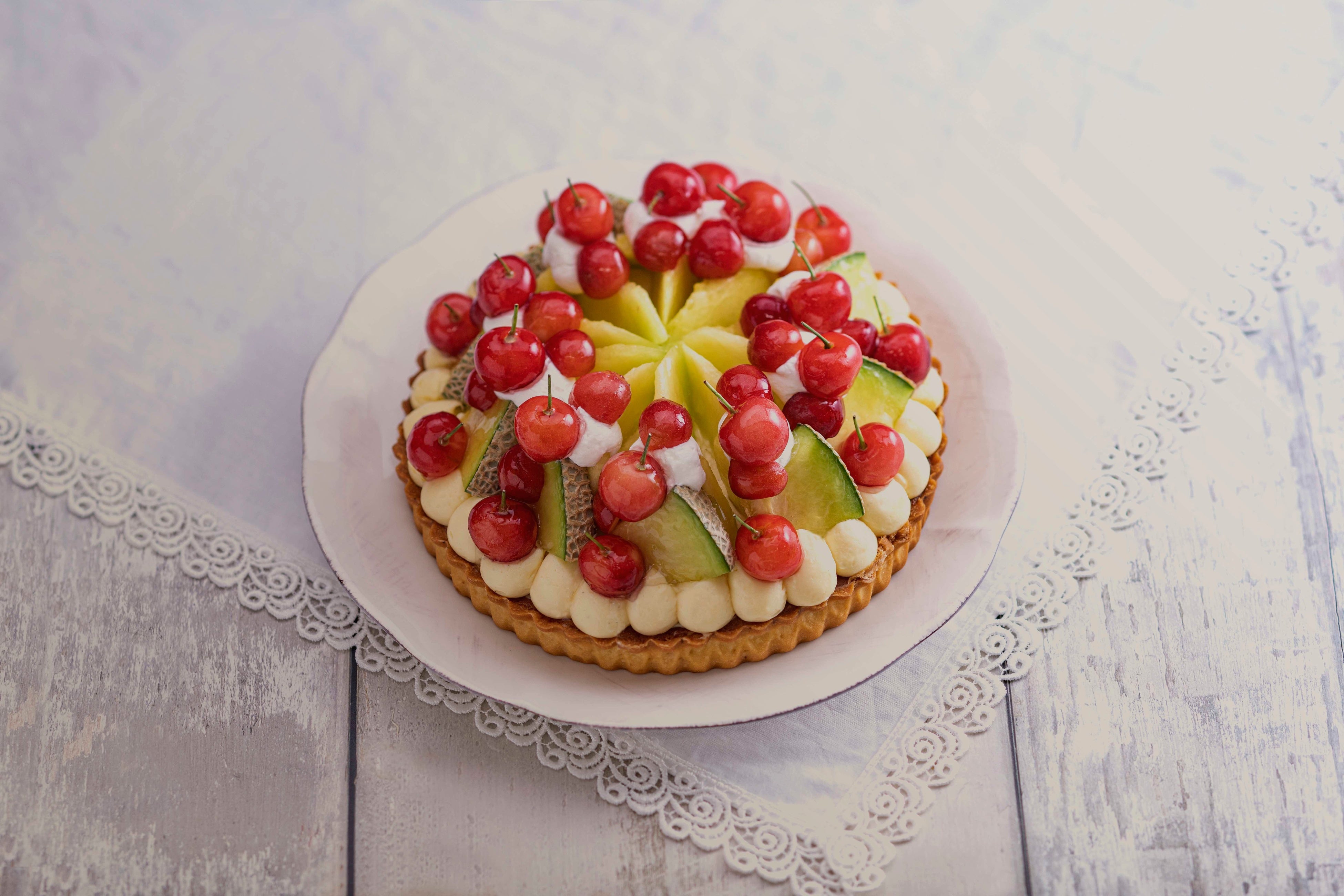 鉾田産メロンと佐藤錦のカスタードタルト 1ピース900円(メニューの提供は6.1~)