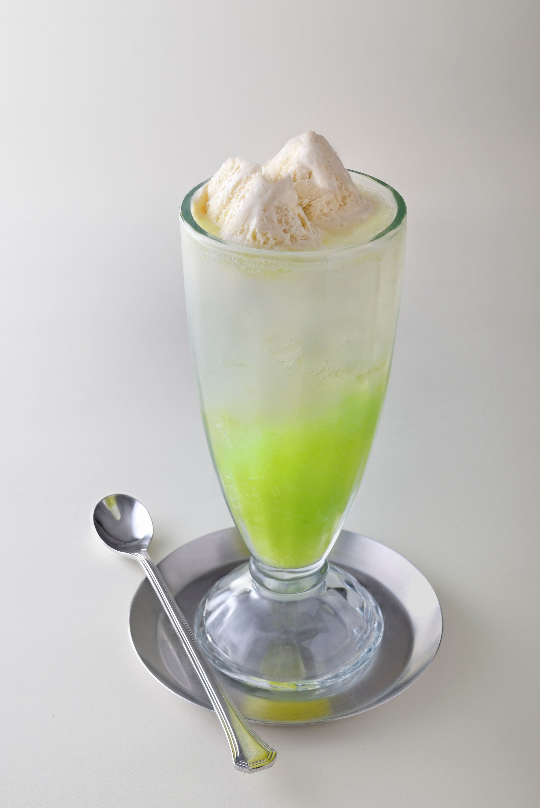 フレッシュメロンのピューレで作ったソーダにフランス産バニラアイスをのせました。
