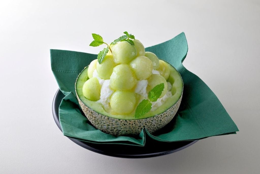 鉾田産メロンを半玉使い、雪のような食感の練乳氷を乗せた贅沢なシェアかき氷です。