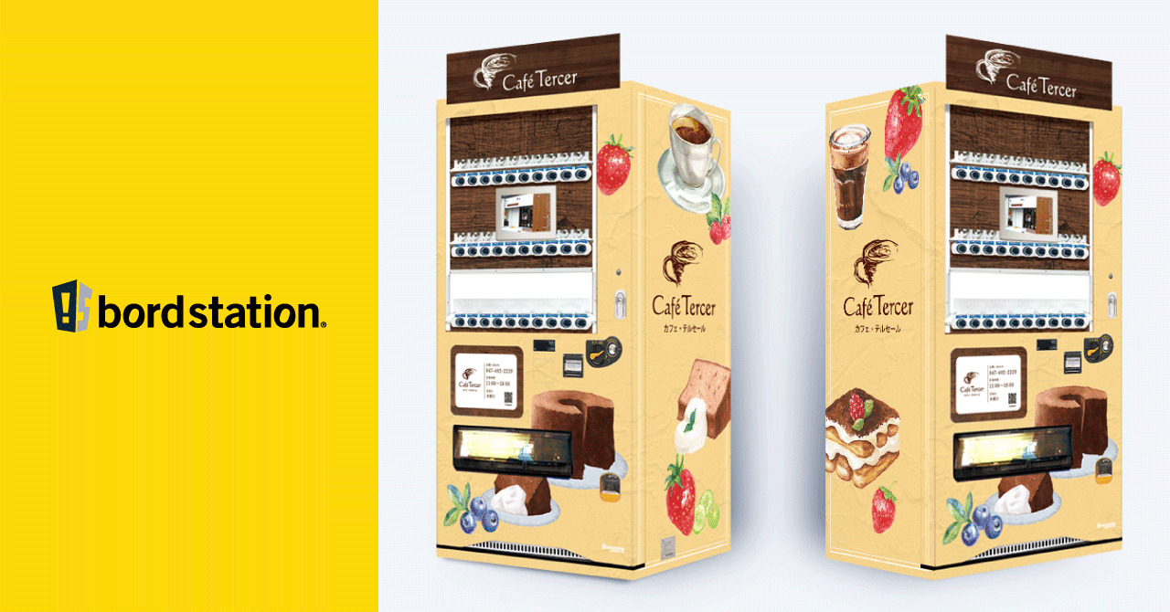 株式会社MJE(本社:大阪市中央区、代表取締役:大知 昌幸)は、当社が提供する看板型デザイン自動販売機「bord station(ボードステーション)」を千葉県白井市の「Café Tercer(カフェ・テルセール)」に設置しました。