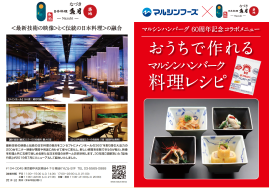 日本料理 魚月-Nazuki-(所在地:東京都中央区 / 株式会社ムーンライト 代表:山本健太)は、株式会社マルシンフーズ(本部:東京都中央区、社長:吹上渡)と、築地に拠点を置き“食”で繋がる企業同士で、2022年6月15日(水)から7月15日(金)の期間限定コラボレーション企画を実施します。第1弾として5月に実施した「不二の梅こぶ茶を使った鯛めし御膳」にひき続き、第2弾として店内に常設する約200台のモニターを活用した、食のエンターテインメントをご提供します。