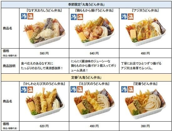 すべての「丸亀うどん弁当」で、ぶっかけうどん(冷)、かけうどん(温)が選べます。