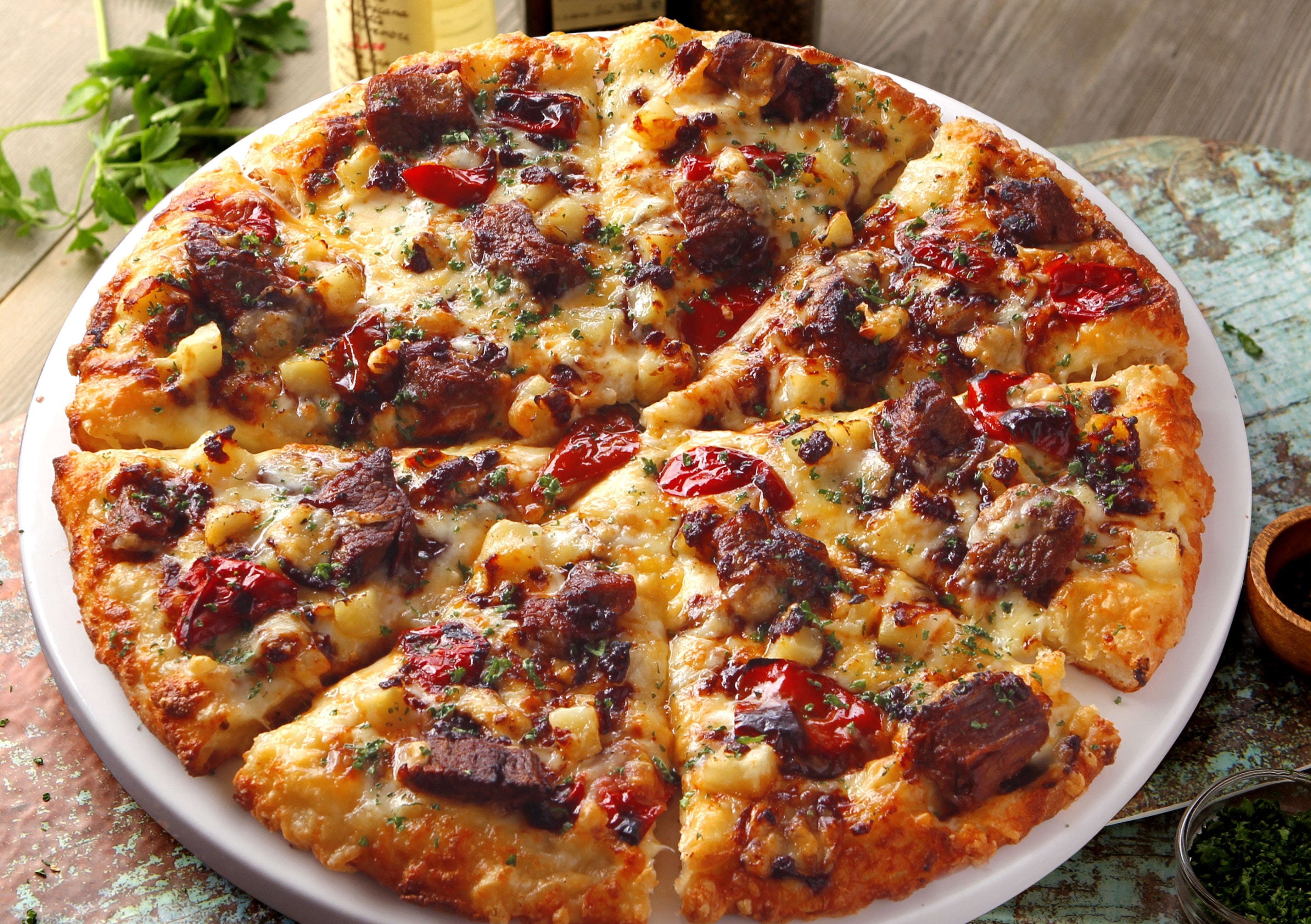 『夏の絶品グルメクォーター』は、スペイン産イベリコ豚のベーコンと7日間熟成したロースハムに、特製のオニオンサワークリームソースが相性抜群の夏の新作「イベリコと熟成ハムのピザ」、濃厚でクリーミーな南イタリア プーリア産のストラッチャテッラチーズを使った「とろけるモッツァの贅沢マルゲリータ」、不動の人気No.1の「テリヤキチキン」、「マスカルポーネと熟成サラミ」がラインナップ。
