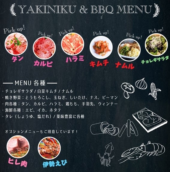 定番のBBQメニューに加えて、焼肉でも人気が高いメニューを追加しました。