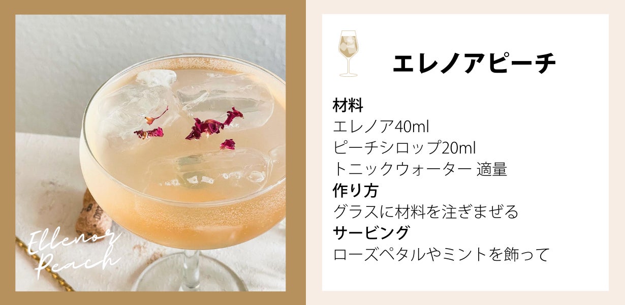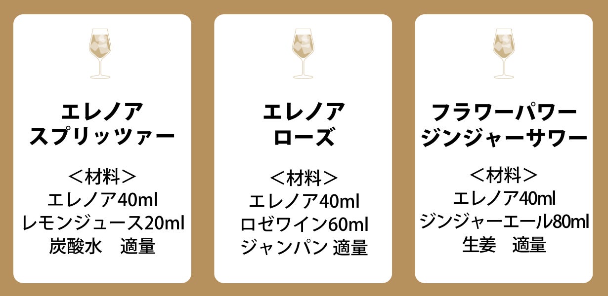 ジントニックに少し加えてみたり、ダイキリのシュガーシロップをエレノアで代用したり、ジンジャエールに少量だけ混ぜてみるなど、そのアレンジは無限大!