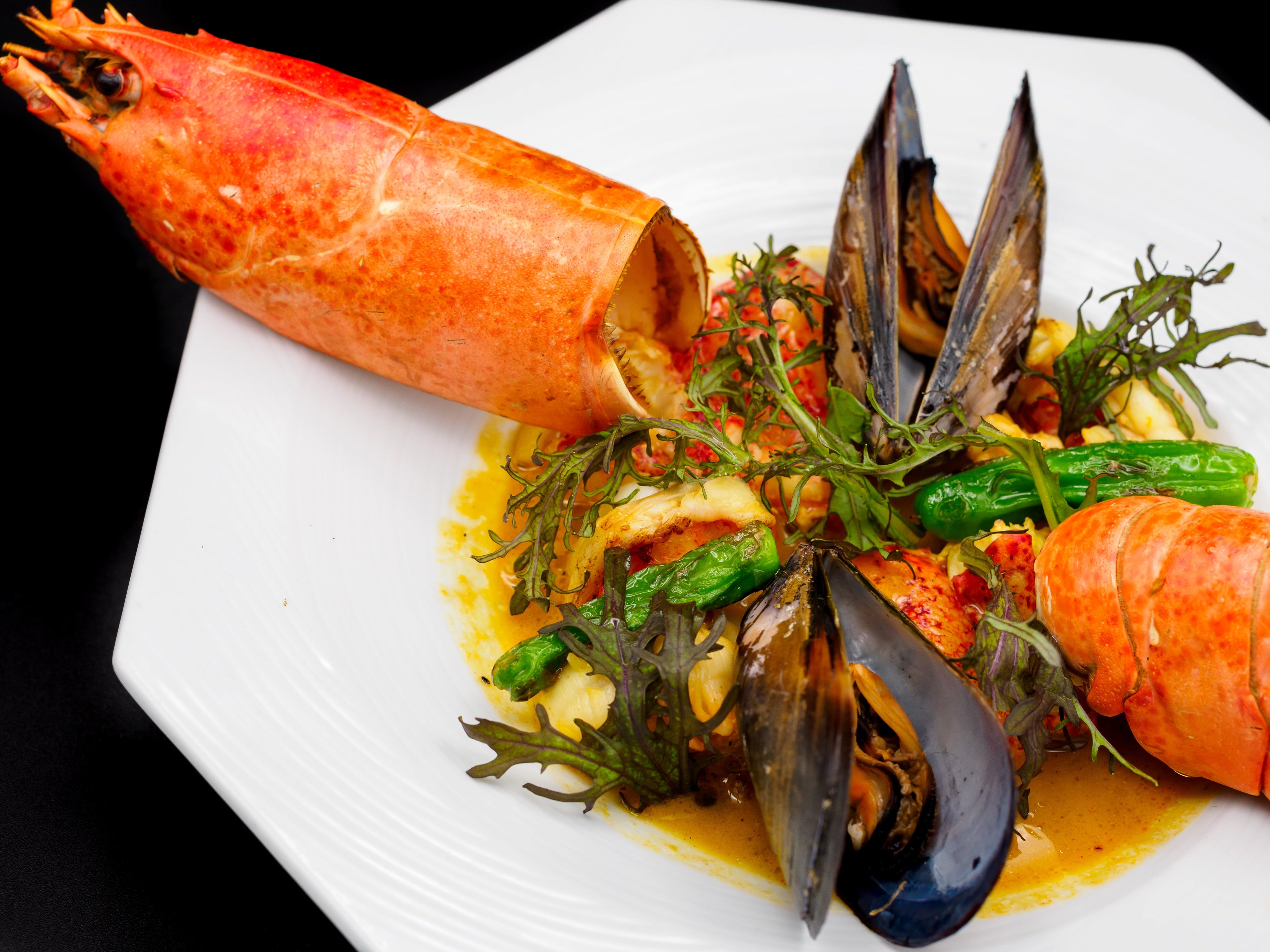 今月のロブスター料理は米の代わりにパスタを使用したパエリア「フィデウア」