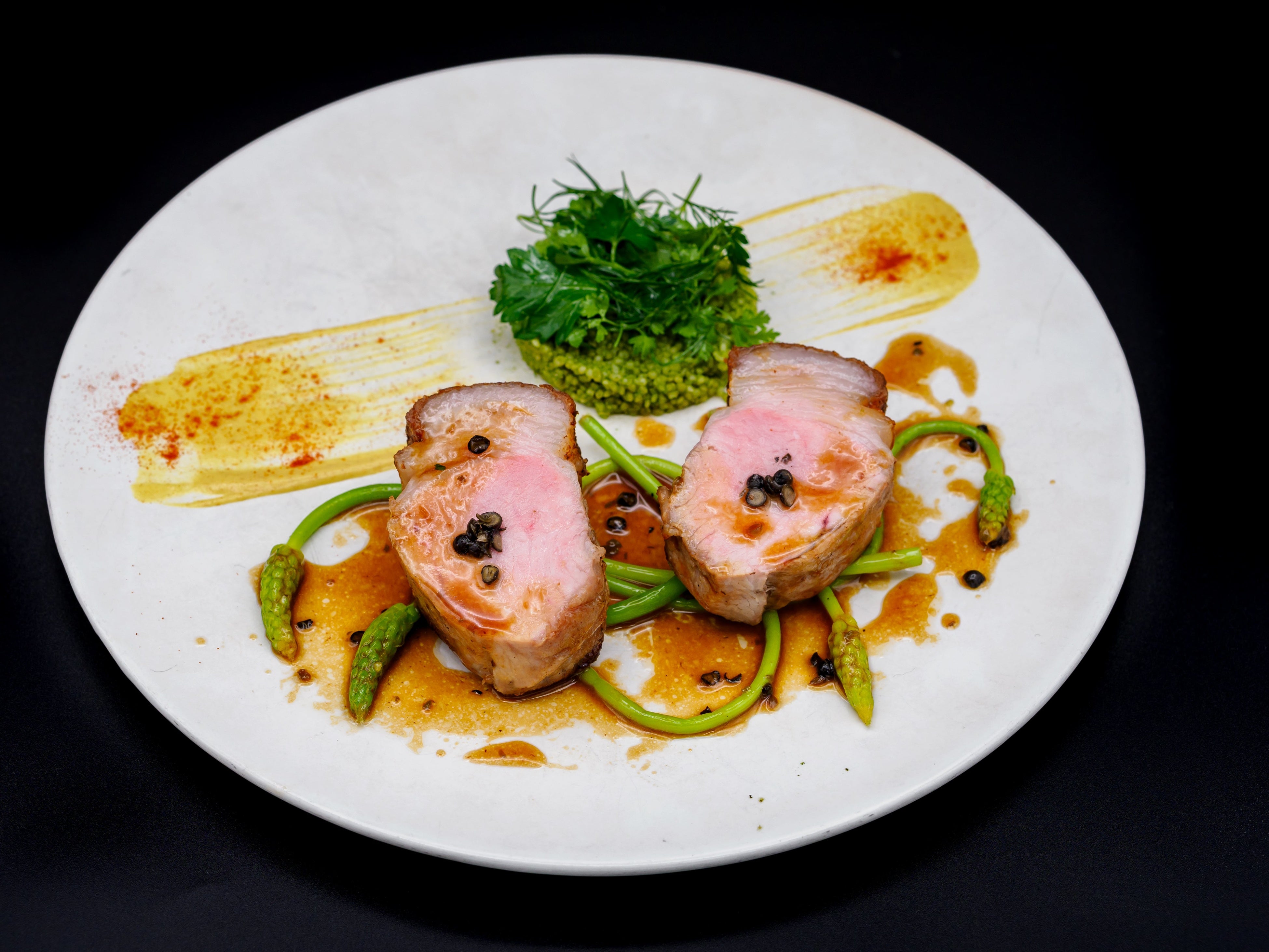臭みがほとんどなく、柔らかい肉質の松坂豚をシンプルにローストいたしました。