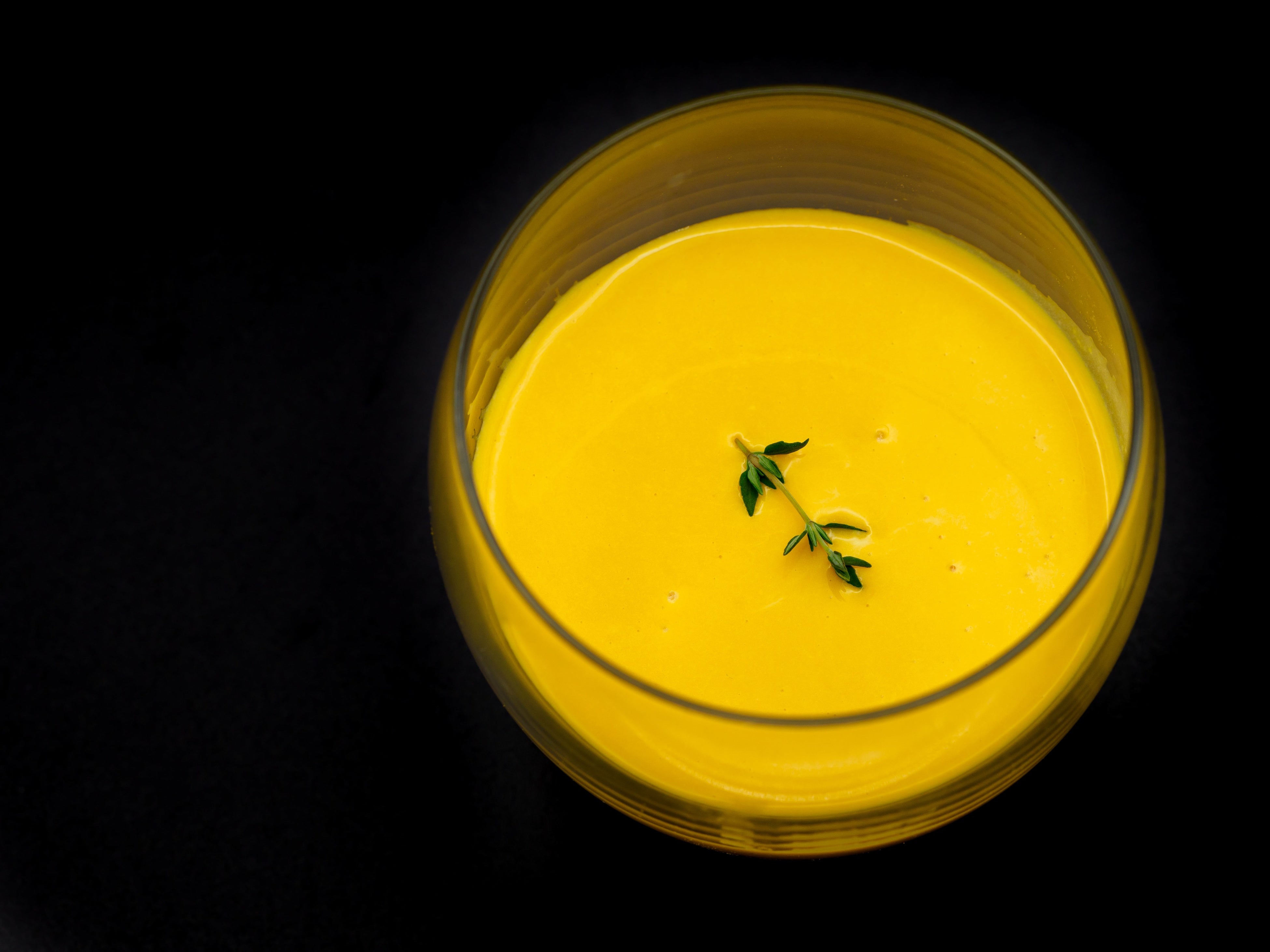 今月のスープは、かぼちゃと豆乳の冷製スープ。
