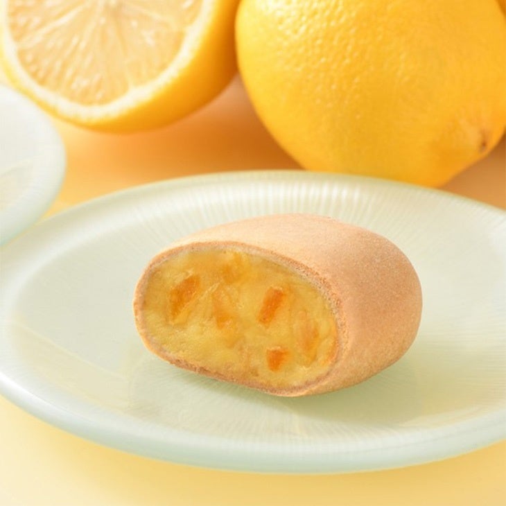 国産レモン果汁と甘夏のピールを練りこんだ餡をもちもち生地で包みました。