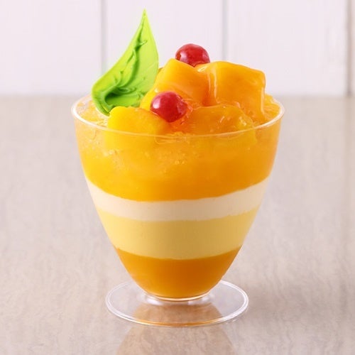 マンゴークリームとなめらかなティラミスクリーム、上にはぷるぷるゼリーとマンゴーの果肉をのせて。