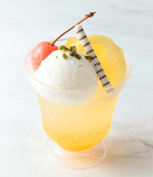炭酸がシュワっと弾けるレモンソーダジュレにパッションフルーツのジュレを重ねた爽やかなグラスデザート。