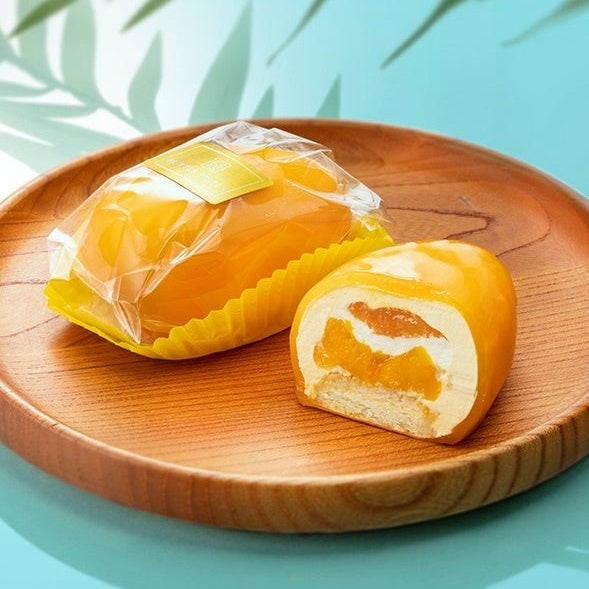 マンゴーバタークリームにマンゴー果肉などを合わせマンゴージュレで包みました。