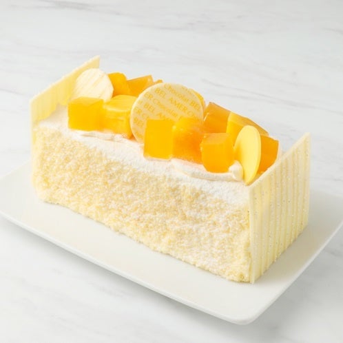 ふわふわのスポンジ生地でチーズクリームをサンドし、ホワイトチョコの生クリームとマンゴーとパッションフルーツのジュレで華やかに。