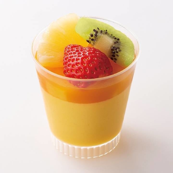 4種のフルーツをトッピングしたマンゴープリン。*地下1階おかず市場
