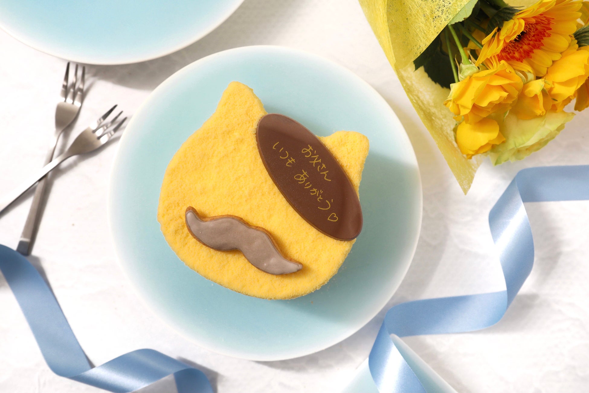 見た目の可愛らしさだけではなく、スイーツ専門店が作るこだわりの味わいと、層によって異なる食感や口どけの変化をお楽しみいただけます。今回は父の日に合わせて、キュートなヒゲのアイシングクッキーを添えてご用意いたしました。ご希望の方には、有料でメッセージプレートをお付けいたします。