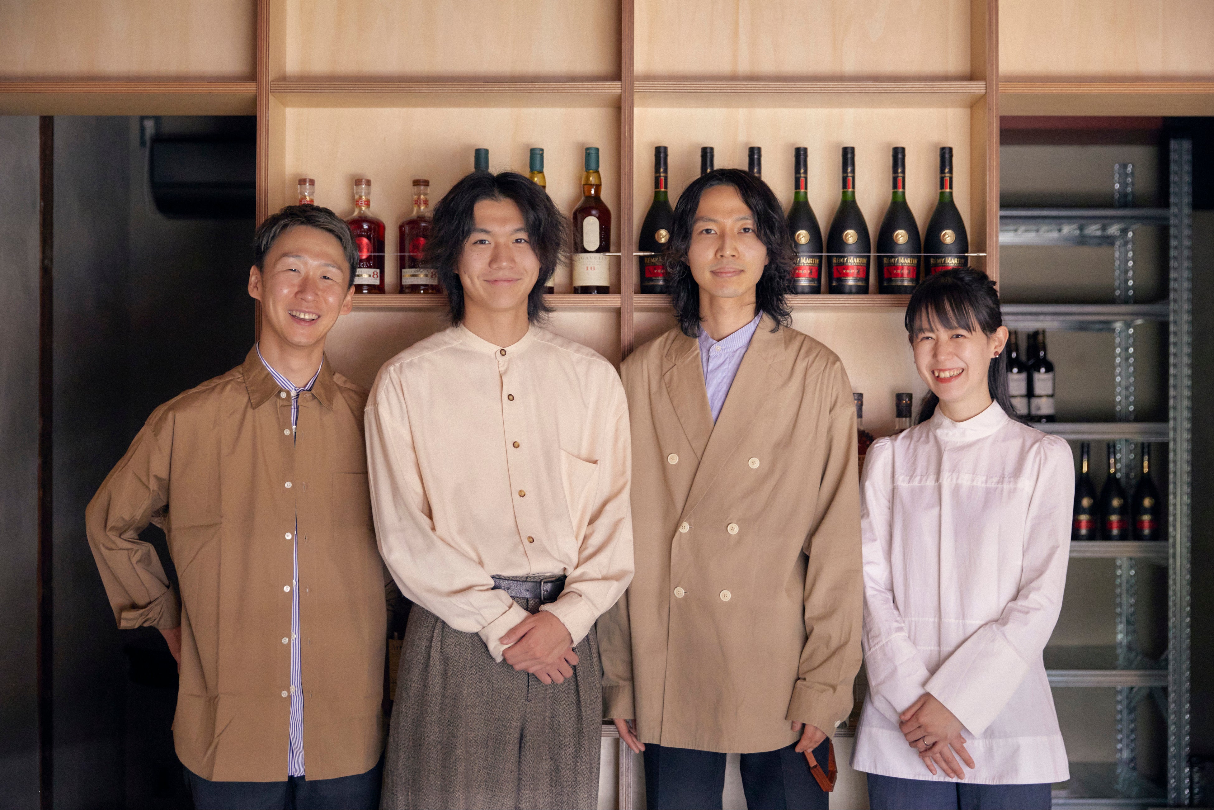 オーナーである武田留以(写真右)は東京での不動産・建築業を経験。夫である、ディレクターの武田光太(写真左)はレミーコアントロージャパン株式会社にて約7年間関東・中部エリアで洋酒販売の営業を経て、「バー・洋酒を愛する人の母数を増やしたい」想いから独立。2020年10月には宮武祥平(写真中右)をメンバーに迎え、今回新たに本多勇陽(写真中左)が加わった。Antonic・BEEPを通して、中目黒から若年層に向けバーカルチャーの発信を目指す。