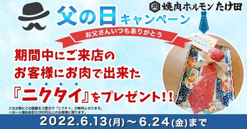 ■焼肉ホルモンたけ田 父の日キャンペーン