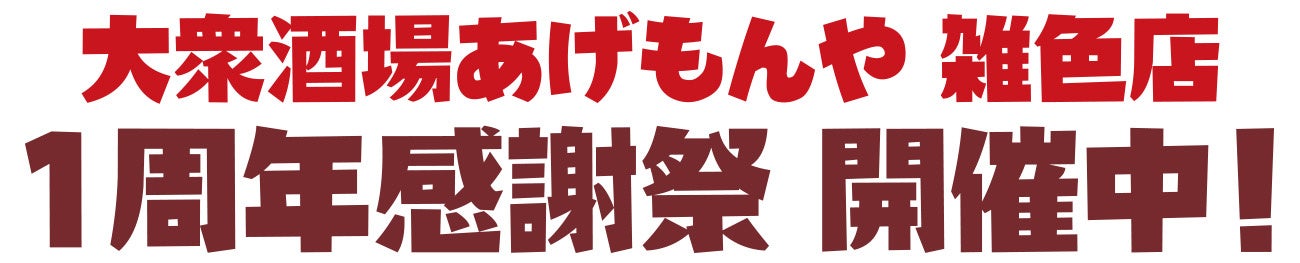 ワンズトライン株式会社(本社:大阪市北区芝田2丁目3番16号、代表取締役:山内仁)が運営する「大衆酒場あげもんや 雑色店」(住所:東京都大田区仲六郷2-14-7、TEL:03-6715-7037)では、1周年感謝祭として「ドリンク飲み放題」を期間限定特別価格で提供しております。