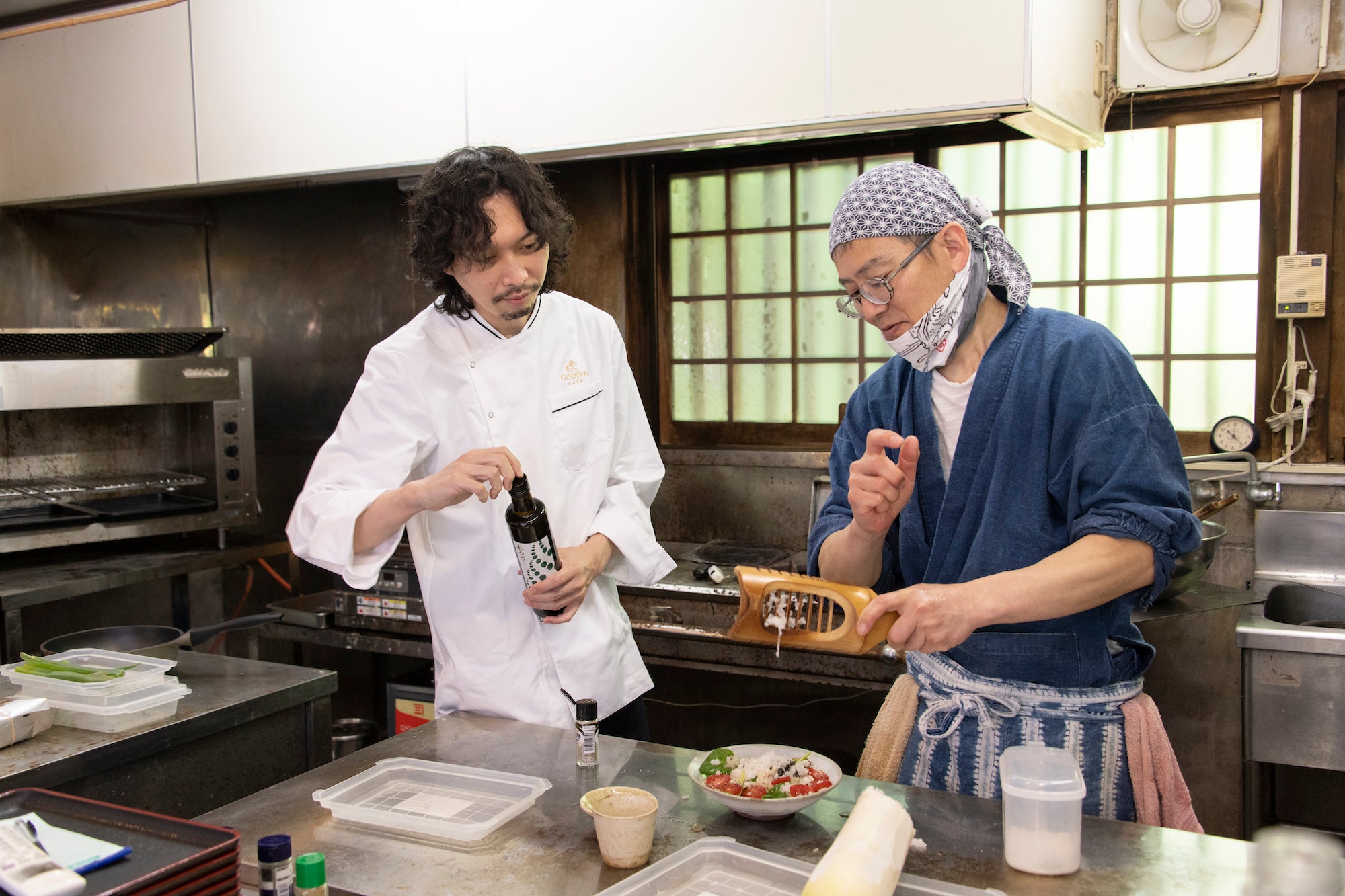 今回のコラボ実施にあたり、ゴディバカフェの料理長 工藤が改めて福井県を訪問。店主の南 和孝さんとともに試行錯誤し、両者の特徴を融合させたメニューを完成させました。