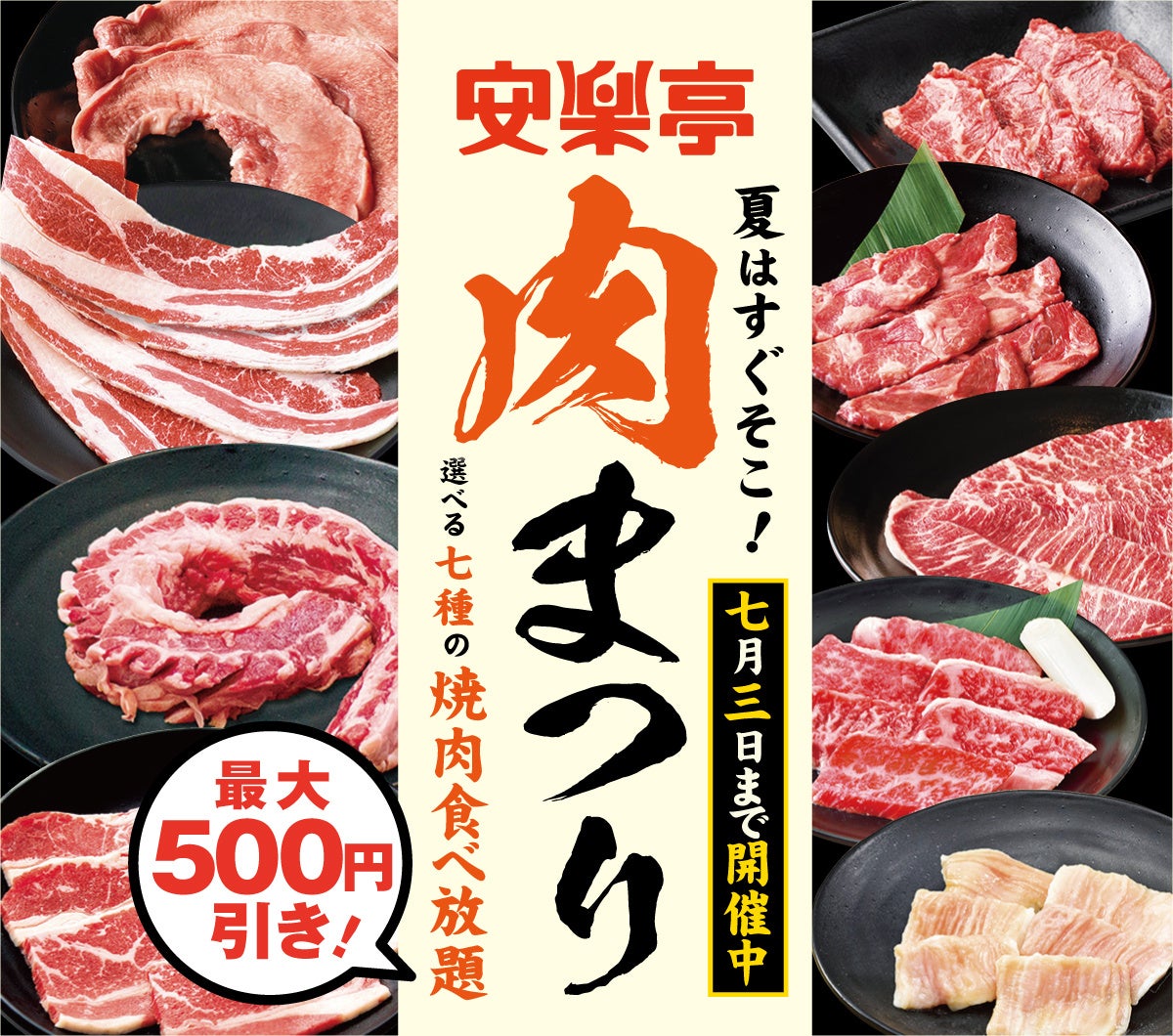 ※特別価格は、上記「夏はすぐそこ!焼肉食べ放題『肉』祭り!」のフェアページ画面をご提示された場合のみ割引対象となります。フェアページ:https://anrakutei.jp/nikumatsuri-hodai/