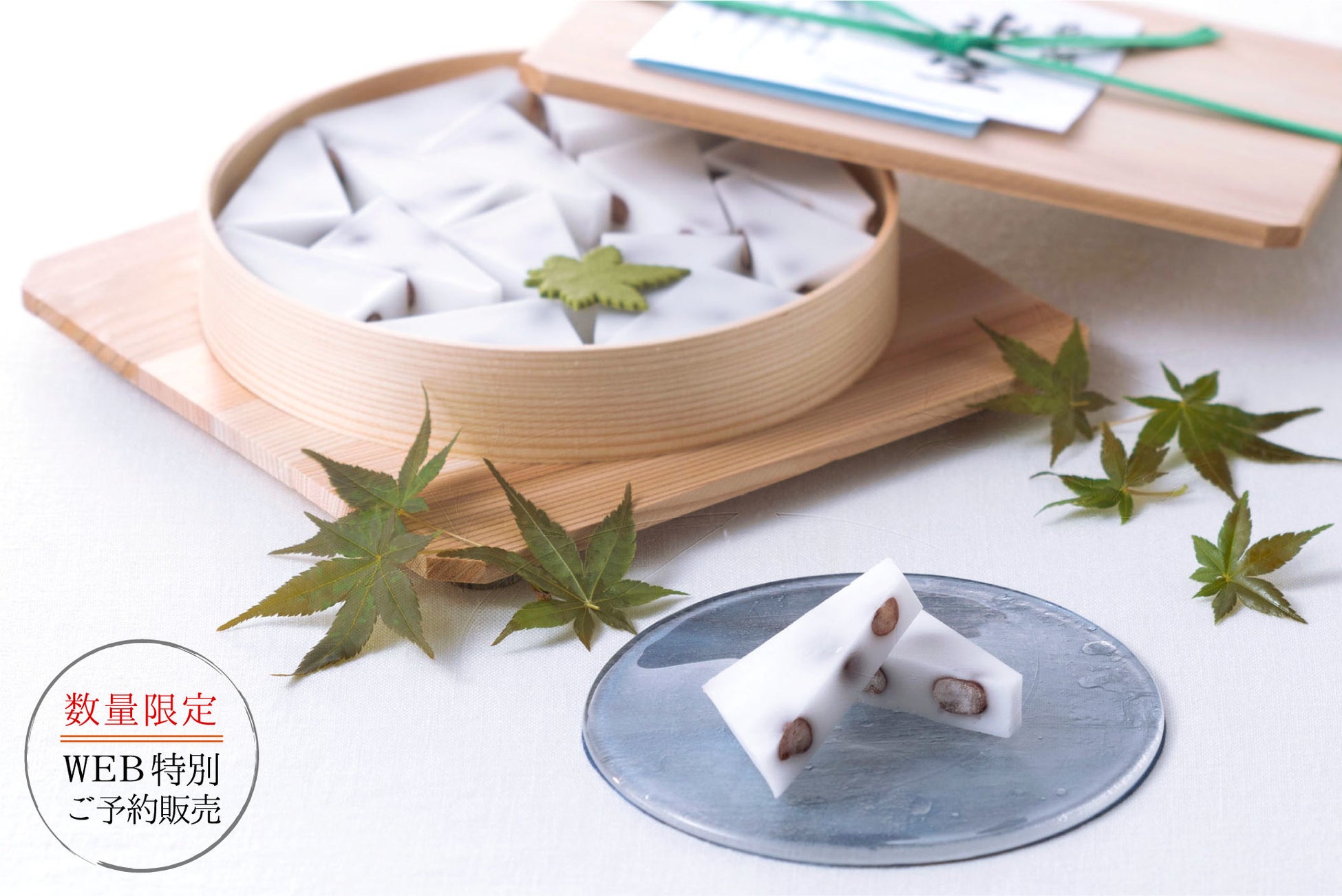 本店・直営店限定の夏季商品「御所氷室(ごしょひむろ)28個入」を公式オンラインショップにて、先着200箱限定でのご予約特別販売を開始いたしました。ご予約受付期間は2022年6月10日(金)12:00〜6月27(月)12:00まで、限定数に達し次第終了となります。