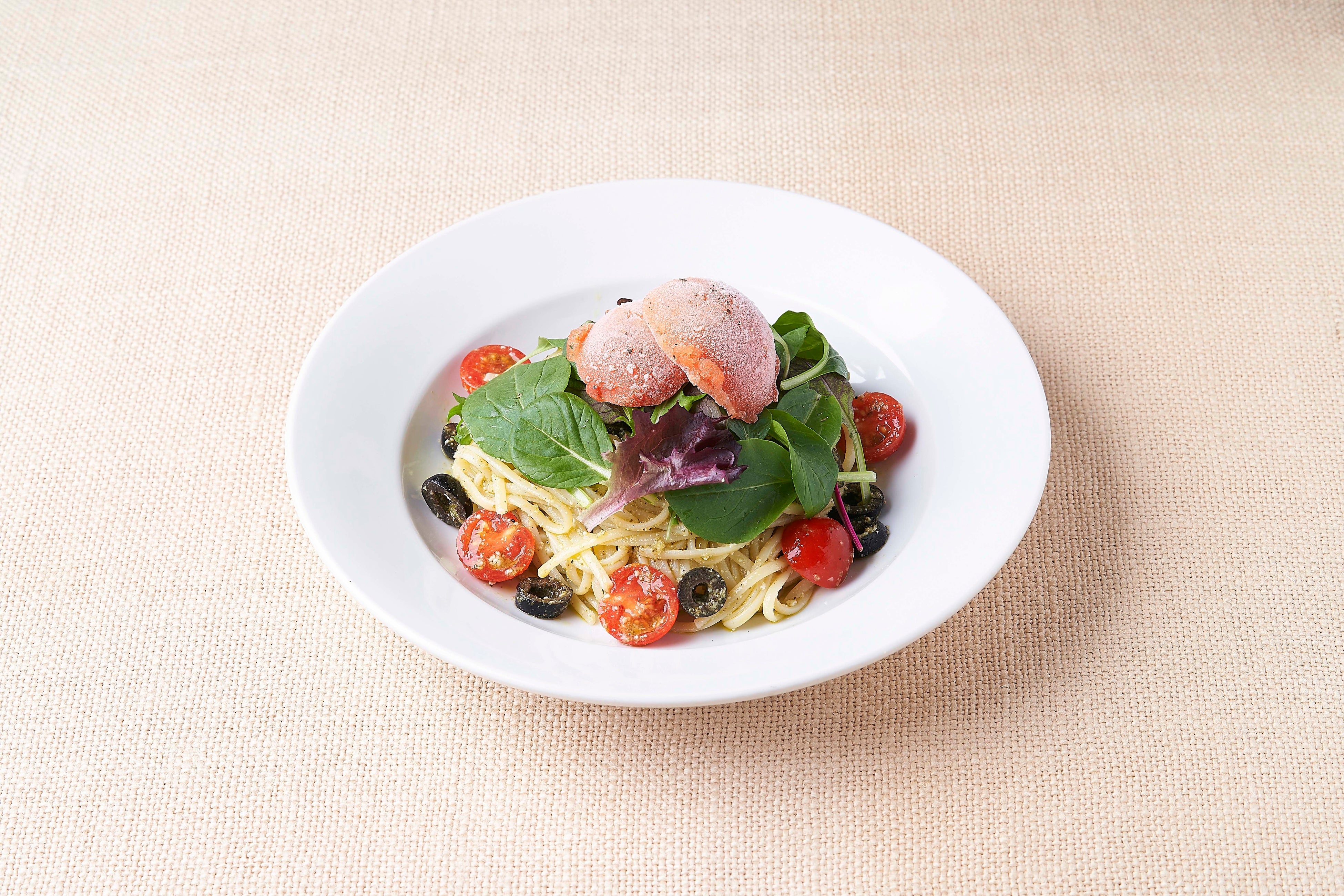 「冷製パスタ “ジェノベーゼ” 完熟トマトのジェラート添え」 1,300円 (※ジェラートなし 1,100円)
