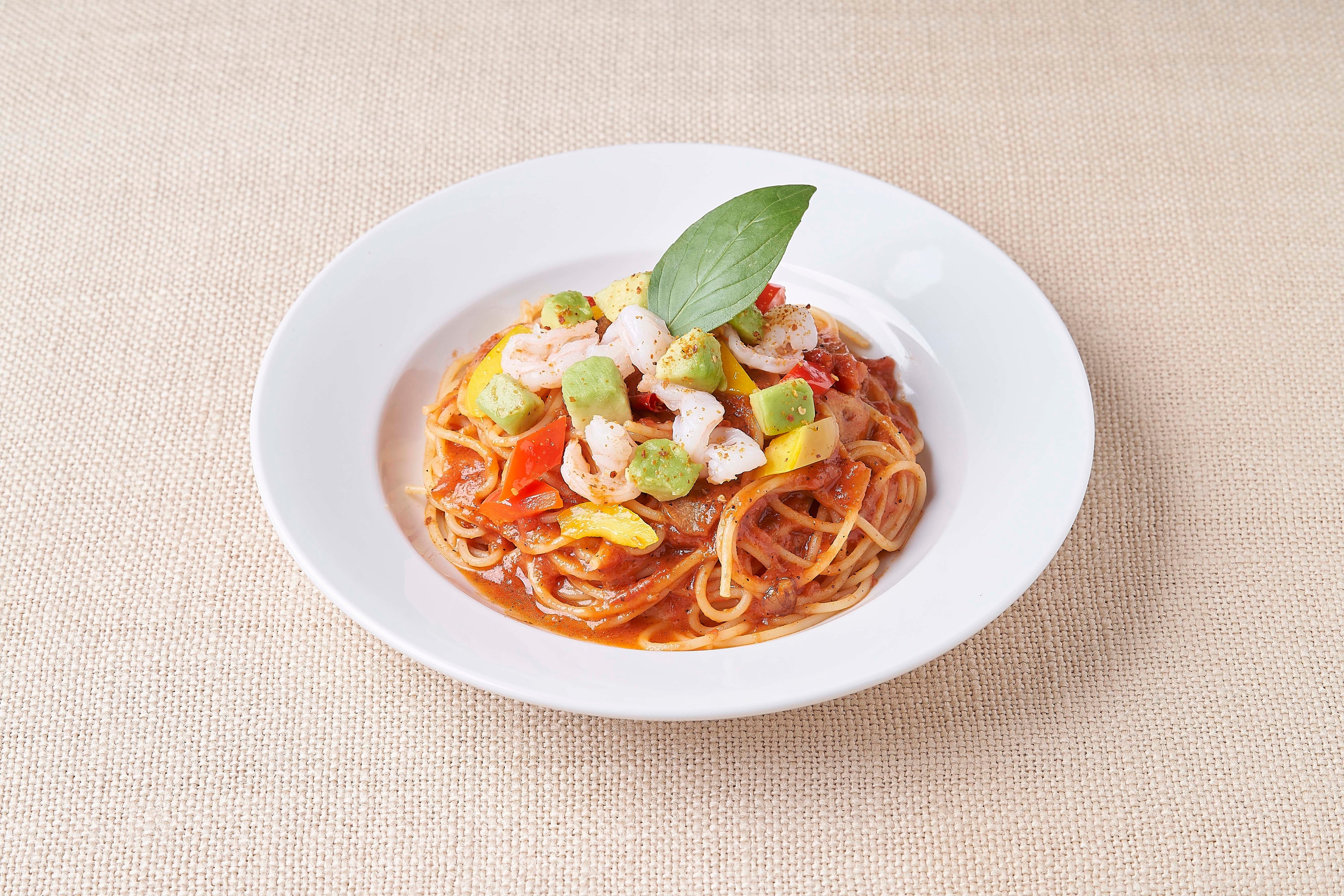 「エビとアボカドの夏辛トマトソーススパゲティ」 1,290円(税込)